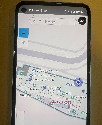 iPNT-Kを実感できる体験会も実施しました。参加者は、アンカーの施設マップが表示された携帯電話を見ながら、自分がどこにいるか、移動したらどのように表示されるか、などを体感。「室内なのに移動の表示がとてもスムーズ」などと話しながら、活用できるシチュエーションを模索しました。