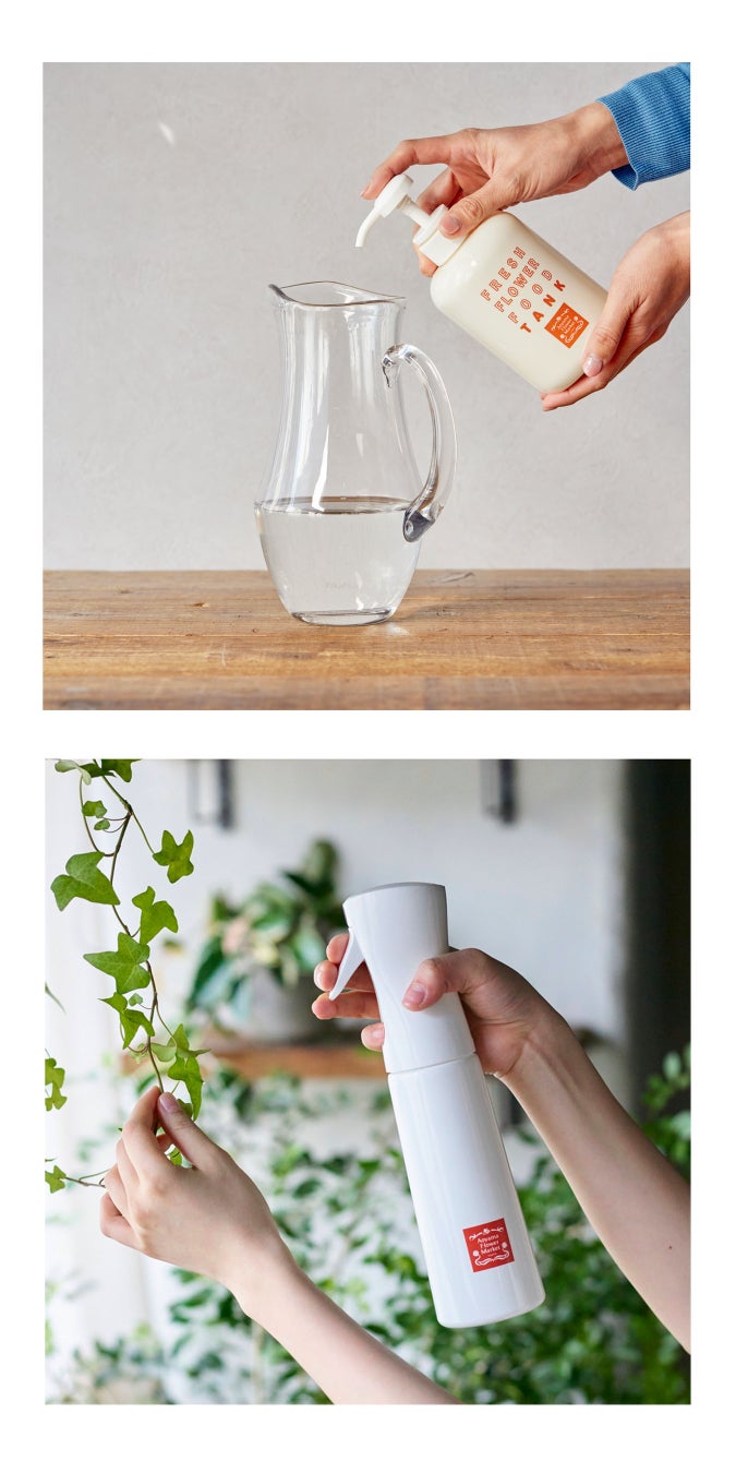 500mlの花瓶と想定した場合、1回あたりたった15円(タンク500mlの場合)または16円(タンク250mlの場合)で花が綺麗に⻑持ちするので、とってもお得です。