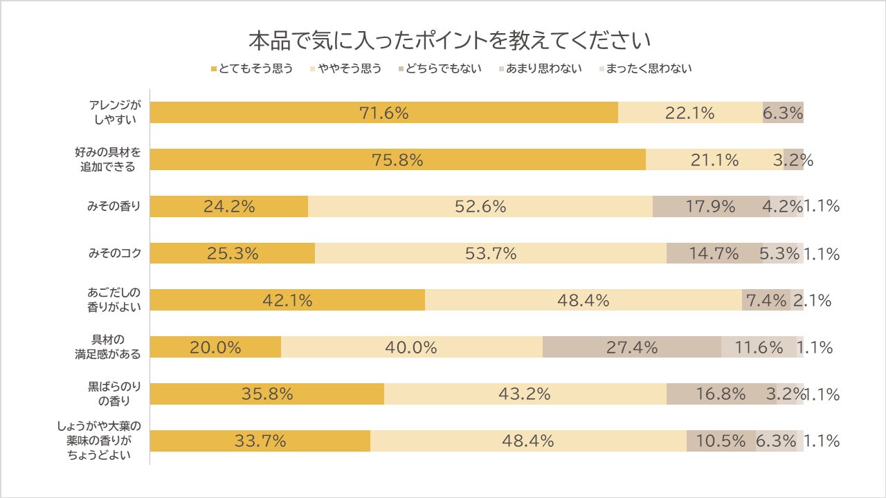 気に入ったポイントでは「好みの具材を追加できる(75.8%)」が最多で、アレンジのしやすさが支持されています。