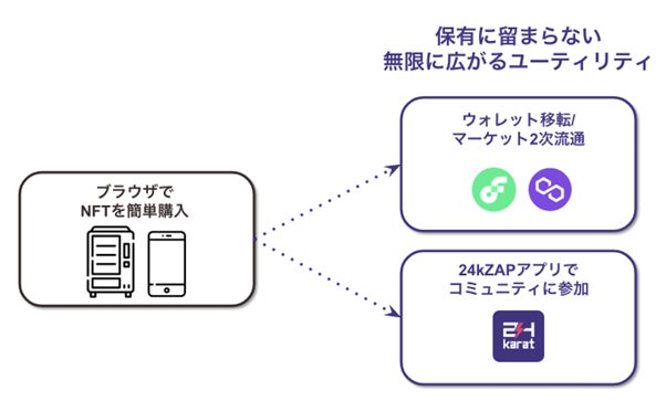 また、24karatのウォレットアプリである24kZAPをダウンロードすると、NFTホルダーのみが参加できるコミュニティや獲得できる更なるリワードに継続的にアクセスできるようになっています。