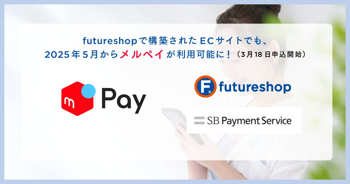 SaaS型ECサイト構築プラットフォーム「futureshop」を提供する株式会社フューチャーショップ(本社:大阪市北区、代表取締役:星野 裕子、以下「フューチャーショップ」)は、SBペイメントサービス株式会社(本社:東京都港区、代表取締役社長 兼 CEO:榛葉 淳、以下「SBPS」)のオンライン決済サービスを介して、株式会社メルカリが提供するフリマアプリ「メルカリ」のスマホ決済サービス「メルペイ」と「futureshop」の連携を開始します。
