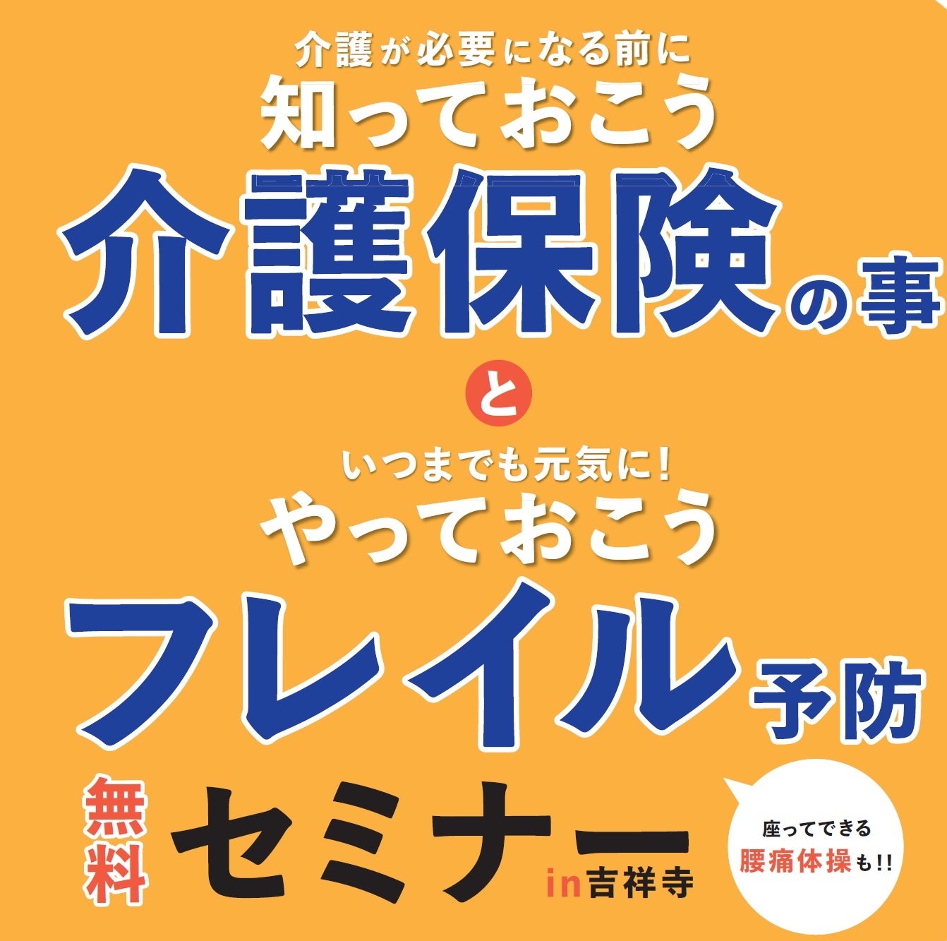シニアライフの“やりたい”を叶える! 吉祥寺で「介護保険」と「フレイル予防」の無料セミナーを開催します