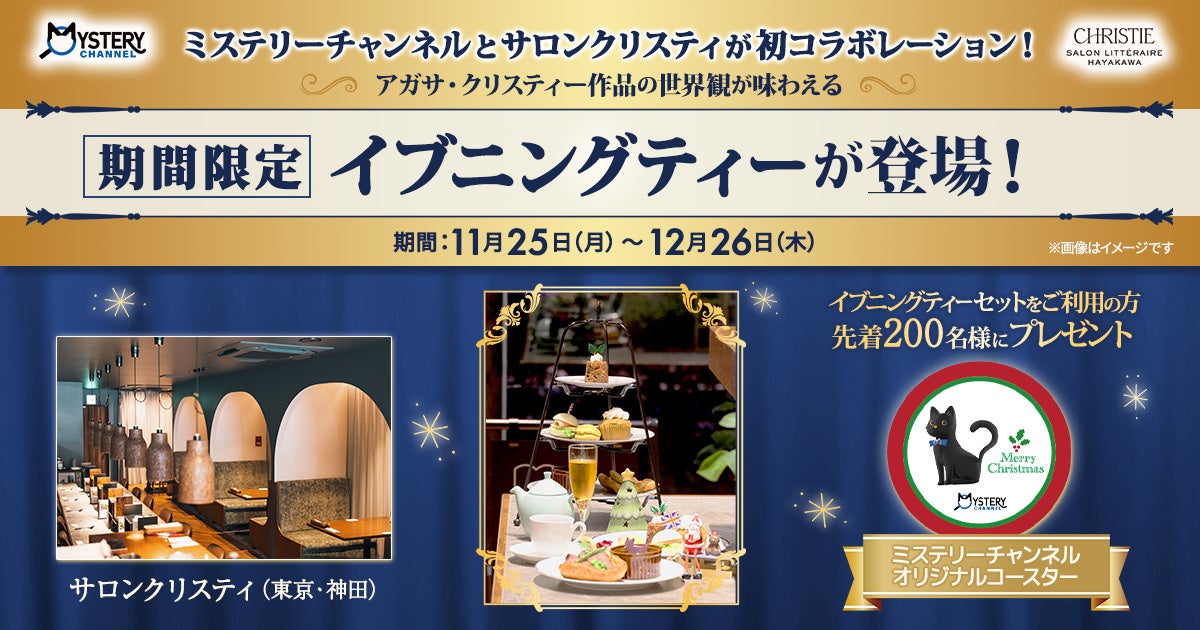 ミステリーチャンネルとサロンクリスティが初コラボレーション!アガサ・クリスティー作品の世界観が味わえるイブニングティーが登場!「ミステリーと食」をテーマにしたトークイベントも12/13 (金)に開催!