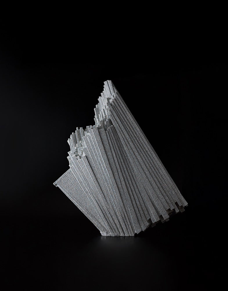 ドライポイント(銅版画技法の一種)を用いて自然物の流動性や壮大な時間の経過を“線”として刻み込む作品を発表している。