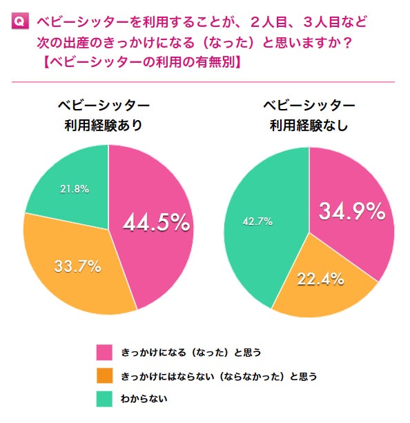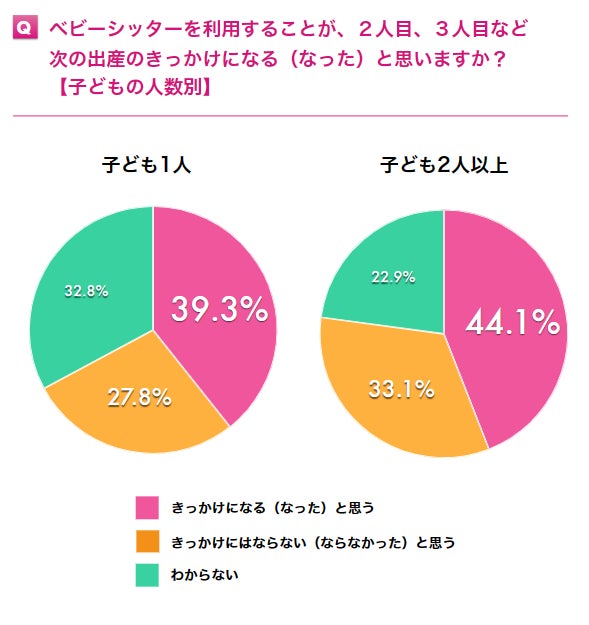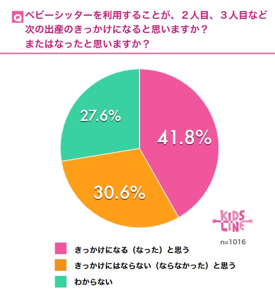 - 41.8%が「ベビーシッターを利用することが2人目以降の出産のきっかけになる」と回答