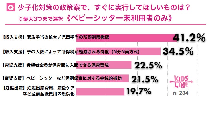 育児中の親86%が望む少子化対策は、「全ての子どもに保育園やシッターなどの育児支援を提供すること」収入支援を上回る回答【1016人に調査】