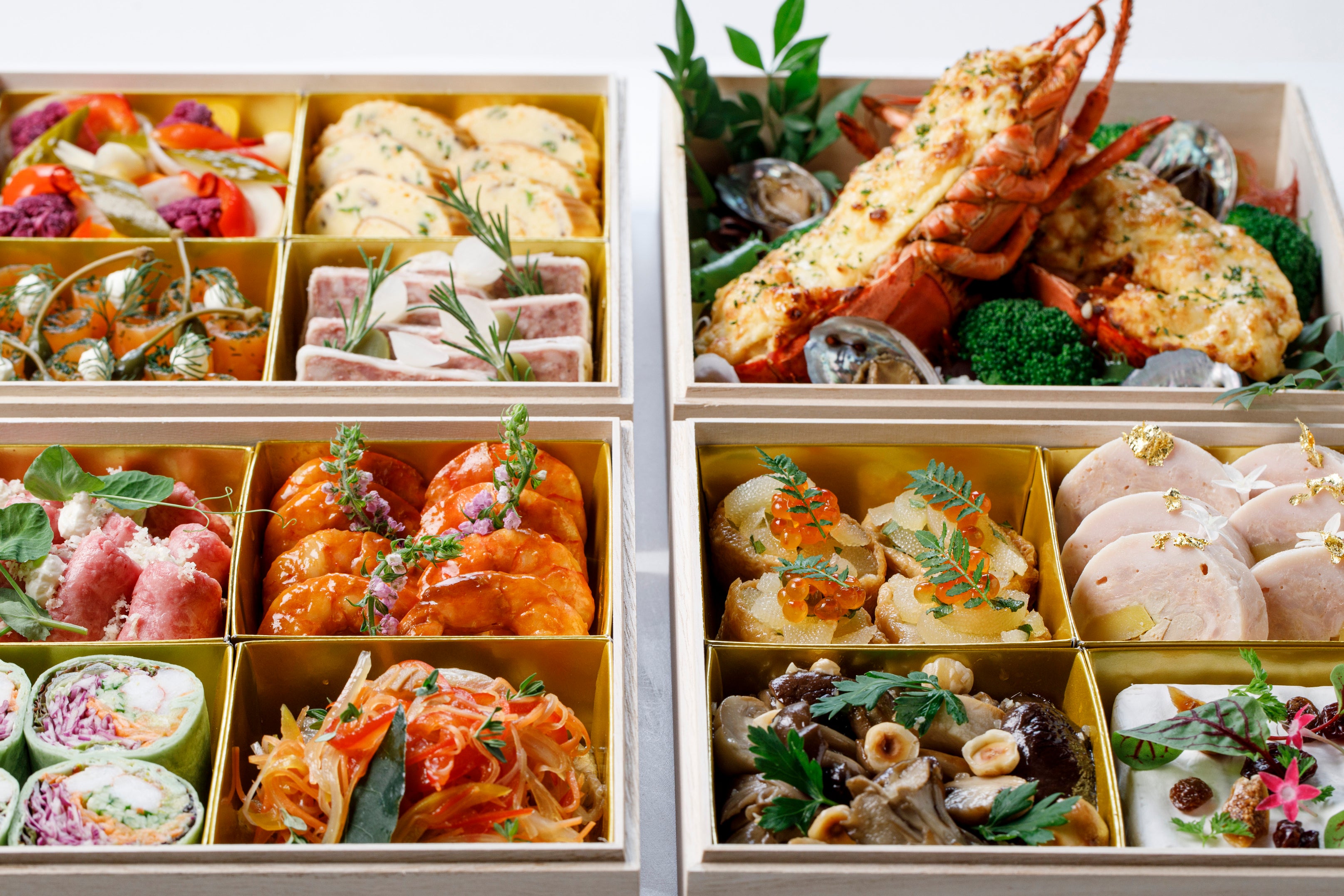 大切な方々と今年を振り返り、新たな年を迎える祝福のシーンにふさわしいスペシャルセットです。厳選されたハイクオリティな食材を使い、和洋のエッセンスを絶妙なバランスで融合した美味を重箱スタイルで。年に一度の特別なひとときだからこそ、プロフェッショナルが創り上げる華やかなパーティーメニューをぜひどうぞ。