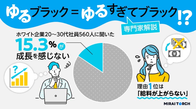 そこで、一般的に働きやすい環境といわれるホワイト企業に勤める社員560人にアンケート調査し、成長を感じられない人はどのくらいいるのか、ゆるブラックの実情についてまとめました。