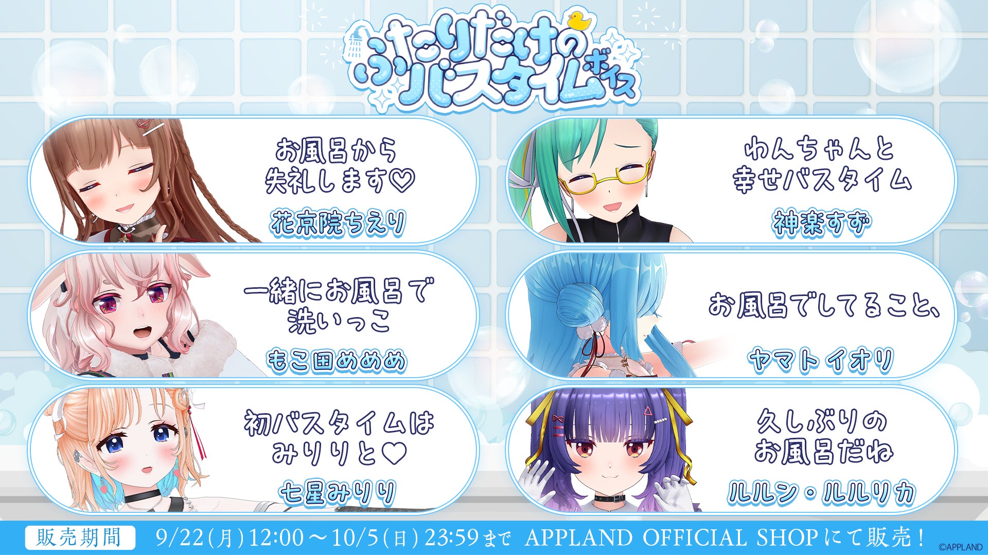 アップランド所属「.LIVE」・「ぶいぱい」メンバーによるバイノーラル『ふたりだけのバスタイムボイス』が9月22日(月)より販売開始!