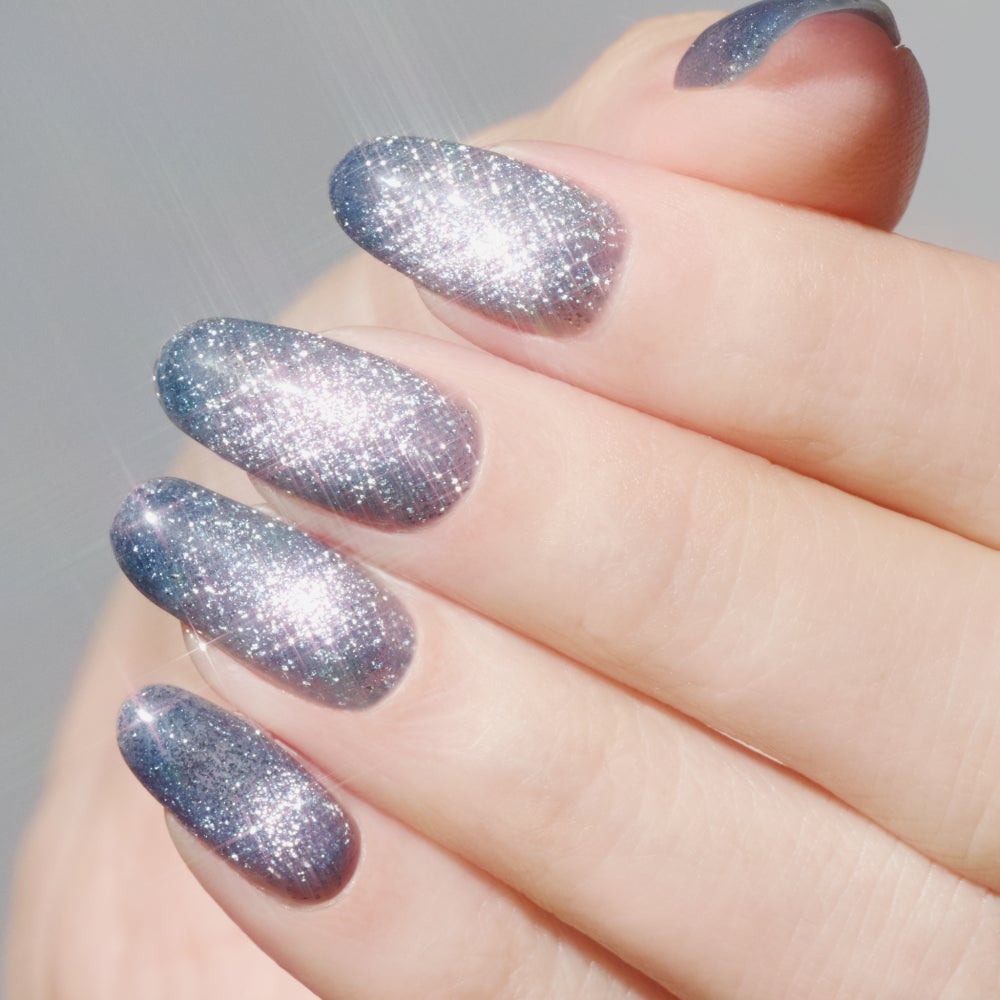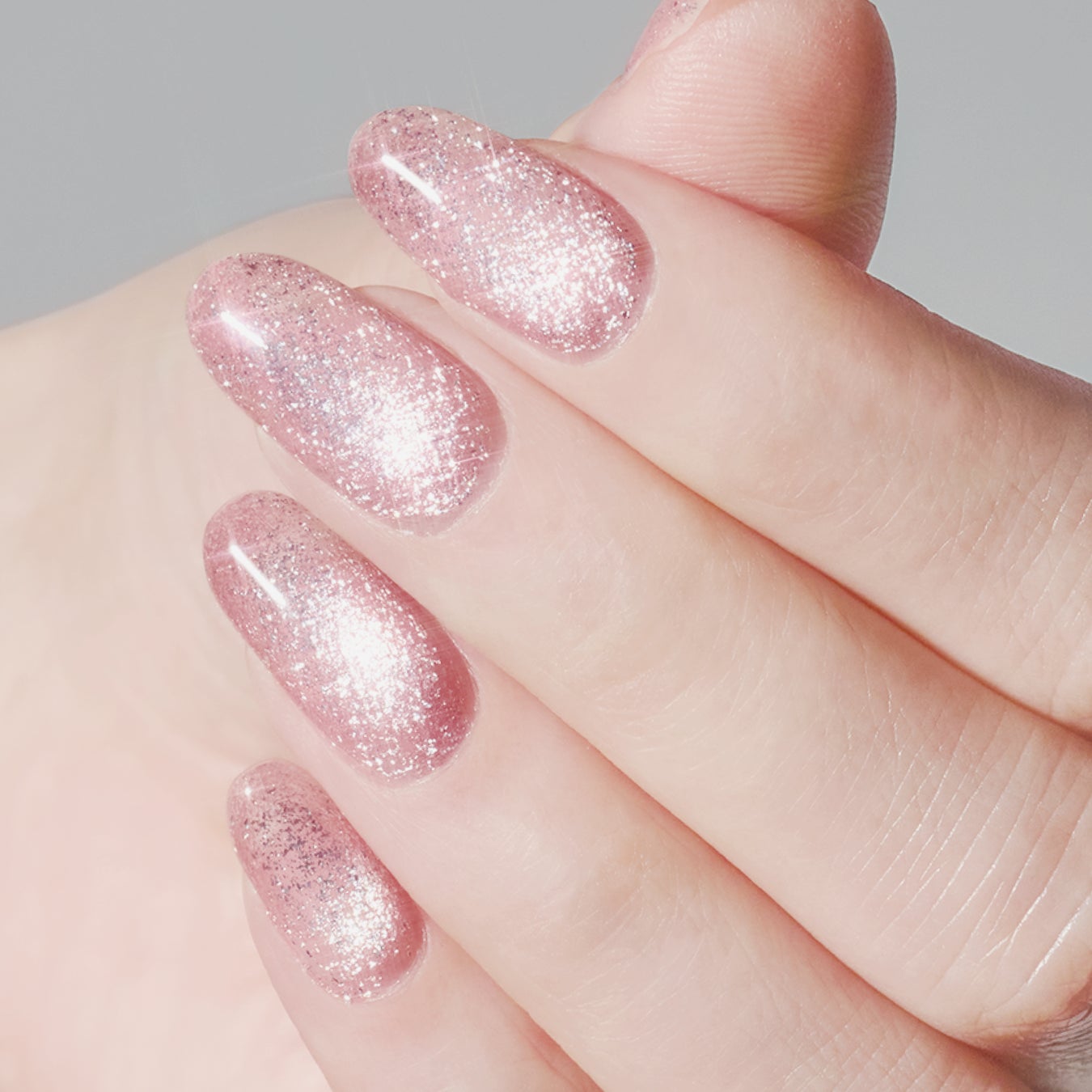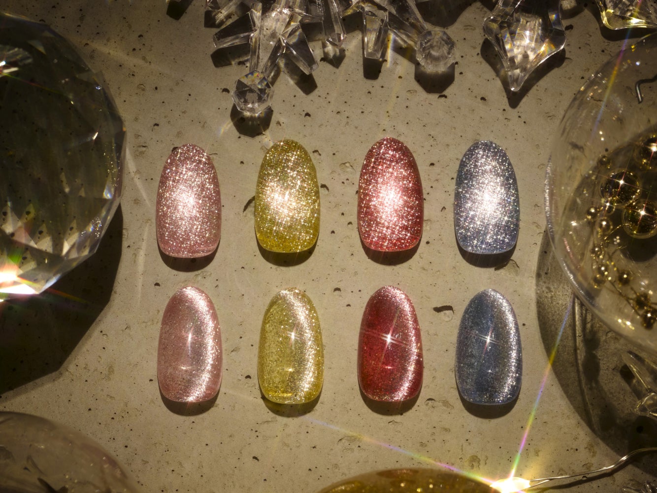 僅かな光をも反射し、まるでダイヤモンドにフラッシュが当たっているように大胆な輝きを放つ「ダイヤモンドフラッシュマグ」。透け感と深みのあるベースカラーに、ブランド初となるザラメのような大粒ラメを贅沢に配合し、華やかで立体感のある仕上がりに。中央にラメを集めると全面キラキラ、広範囲にマグネットを当ててサイドにラメを寄せればシックなラインデザインと、1本でも様々なデザインを楽しむことができます。ぎっしりと敷き詰められたラメがあらゆる光を反射する、冬のイルミネーションにぴったりのネイルが、ホリデー気分を盛り上げてくれます。