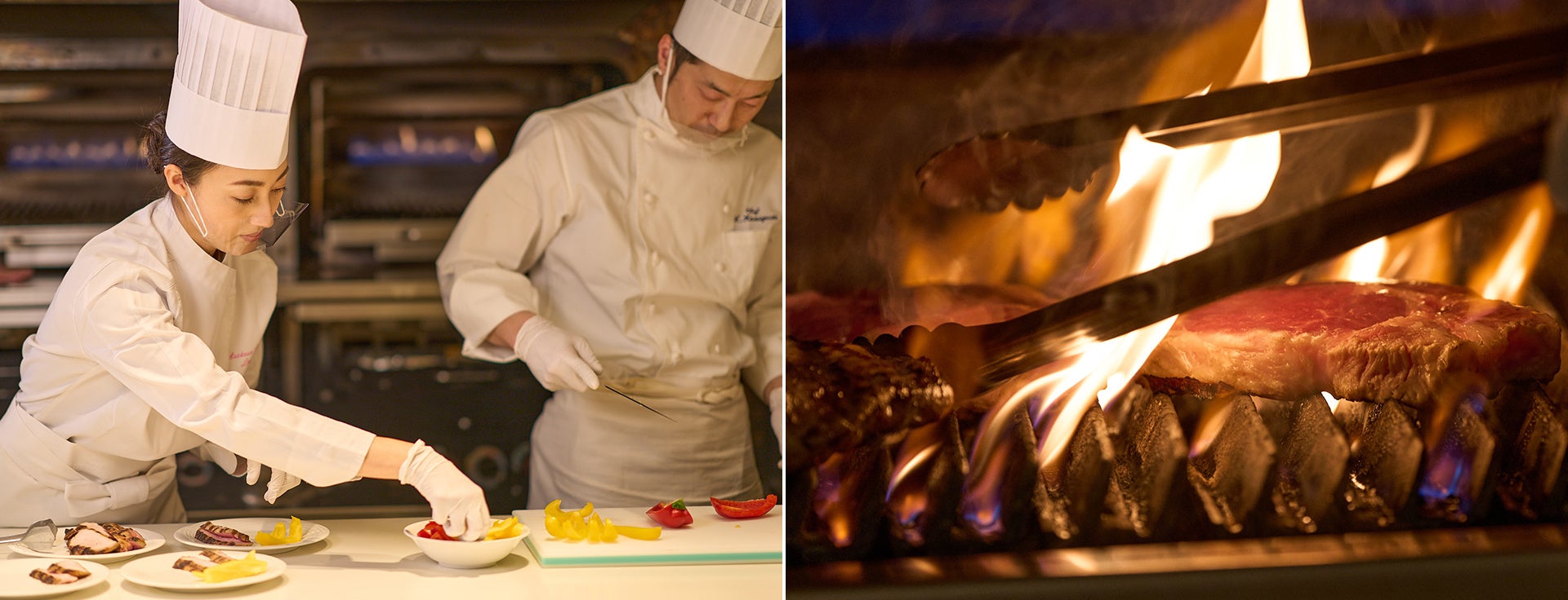 自慢のグリル料理は富士の溶岩石を使った武藏窯で調理。約400℃の高温でグリルした素材はどれも溶岩石の遠赤外線効果によって中心部から火が入って外はこんがり、中はふっくらと焼き上がり、素材本来の旨みをより引き立てます。