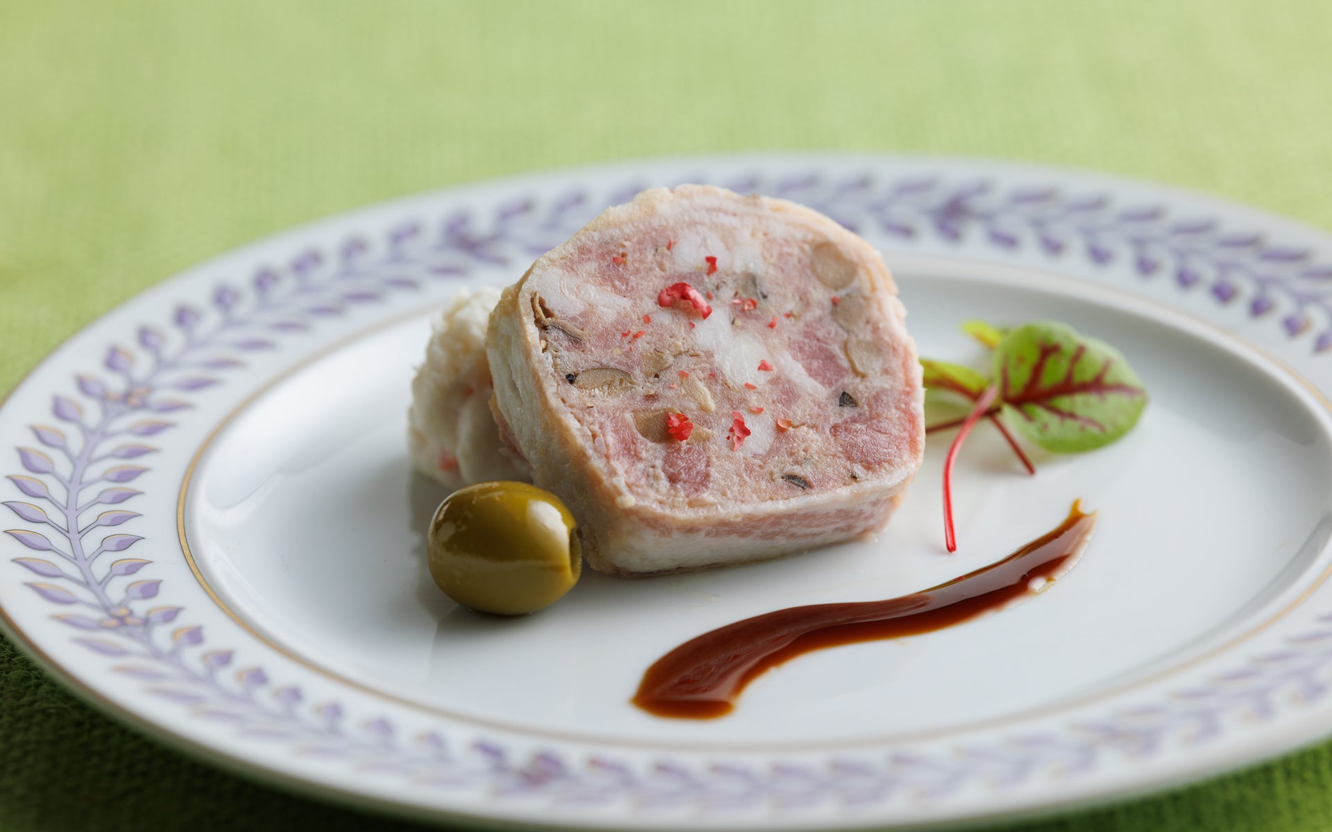 ○イベリコパンチェッタのテリーヌ&ヨーグルトサラダ
