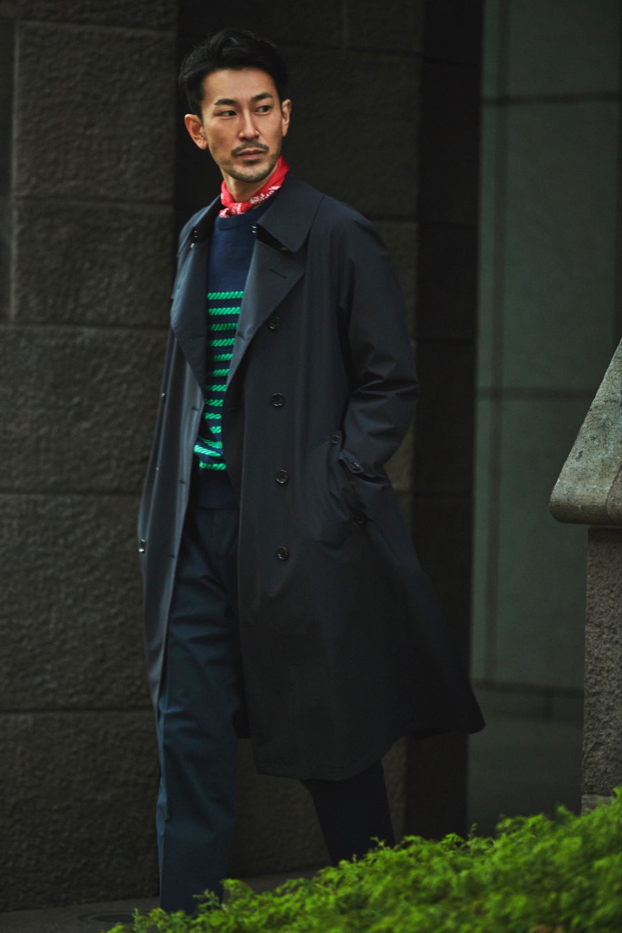 クラシックなトーンのネイビーカラーがモダンかつ都会的な装いにマッチするこのコートは、定番のダブル仕立てながら、エポーレットなどを廃しミニマルで洗練された雰囲気に仕上げています。それによりビジネススタイルはもちろん、カジュアルや旅先のシーンにも合わせられ、削ぎ落とされたそのデザインがさらに現代の男性像を魅力的に演出してくれます。