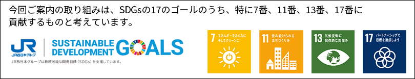 JR西日本グループでは今後も、事業者としての「地球温暖化防止・気候変動対策」の取り組みを進めるとともに、鉄道の環境優位性をお客さま、地域・社会の皆さまにお知らせし、鉄道をはじめとする公共交通のご利用を促すことを通じて、わが国の旅客輸送全体のCO2削減に寄与していきます。