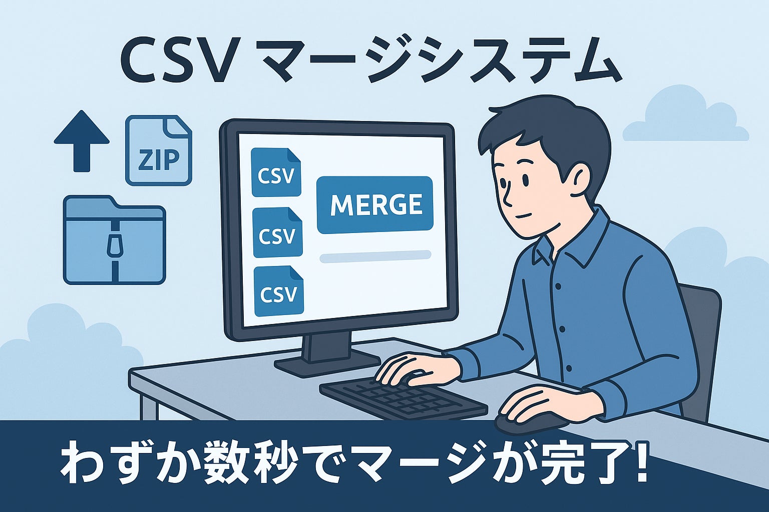 ZIP や CSV をドラッグ&ドロップするだけで、ヘッダー構造が同一のファイル同士を自動結合し、種類別に 1 つの CSV へ統合。