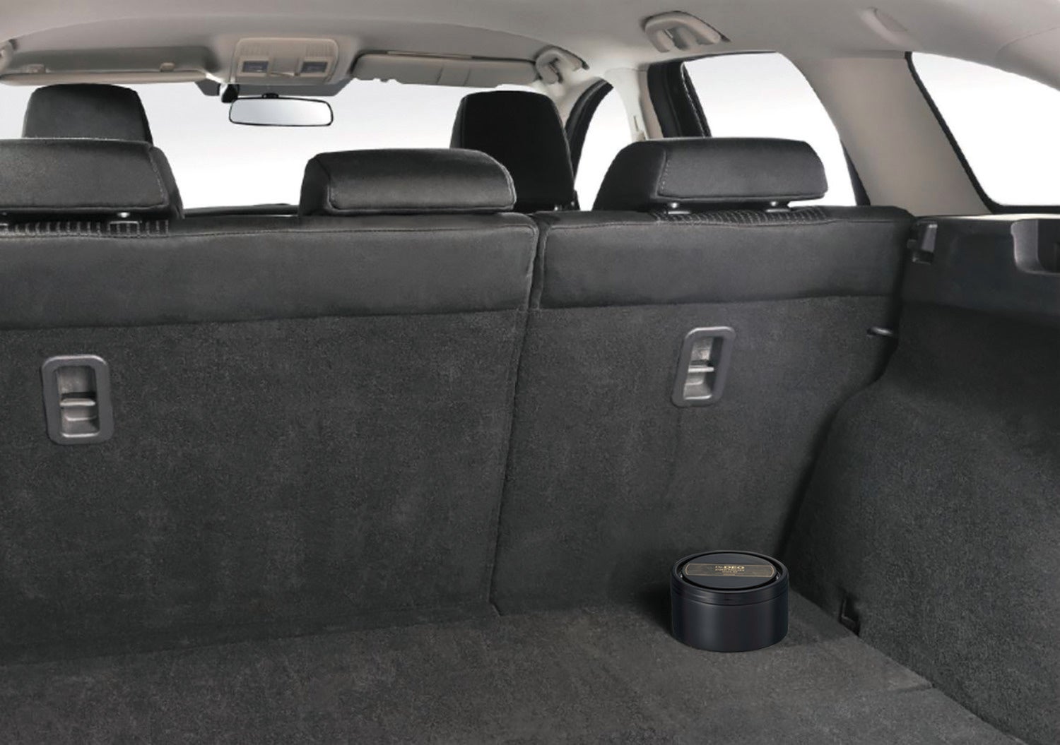 空気清浄機をイメージした天面のドット柄が消臭成分の広がりを表現。マットな質感とツヤの切り替えで高級感を演出しています。