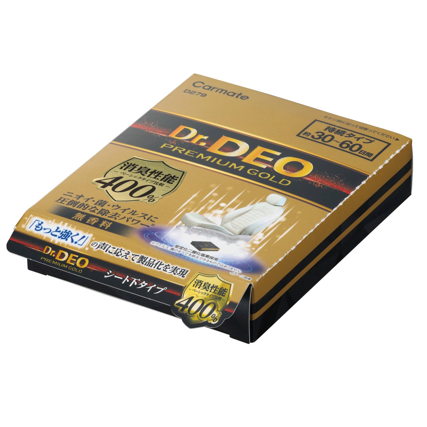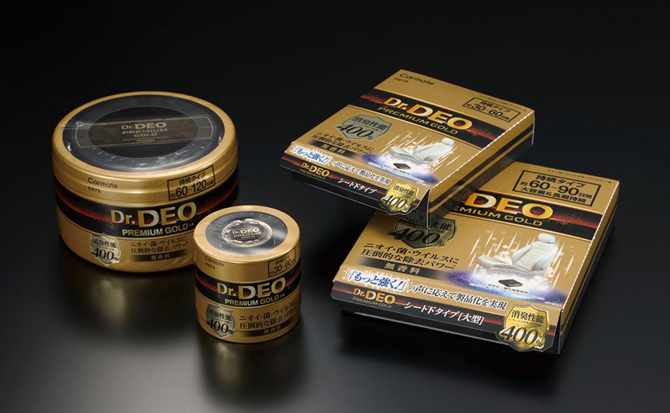 株式会社カーメイト(本社:東京都豊島区)は、悪臭分子を除去する安定化二酸化塩素を採用した消臭剤『ドクターデオ』から、ベーシックシリーズ比較約400%の消臭性能を実現※した『ドクターデオ プレミアムゴールド』を4月11日(火)に発売いたしました。置きタイプ、シート下タイプより計4アイテムをラインナップしております。詳細は以下をご覧ください。