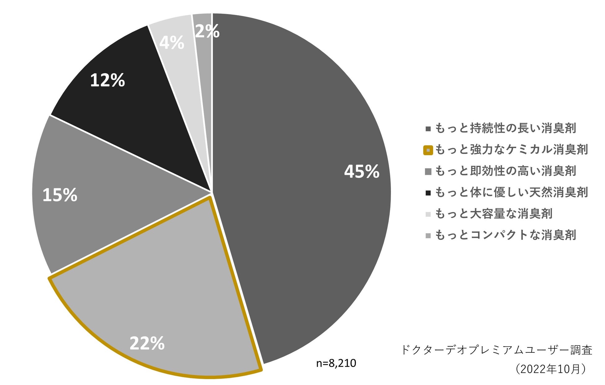 『ドクターデオ』は2010年、クルマ用(ベーシックシリーズ)として発売して以降、体感できる消臭効果が評価され、現在では出荷累計数1,200万個を超える消臭剤です。2015年には消臭性能を200%としたプレミアムシリーズを発売しラインナップを拡げてきました。消臭性能を高めたプレミアムシリーズの満足度は81%と高いものの、以前からより強力な消臭効果を求める声があり改良に取り組んで参りました(以下グラフは昨年のユーザー調査結果)。