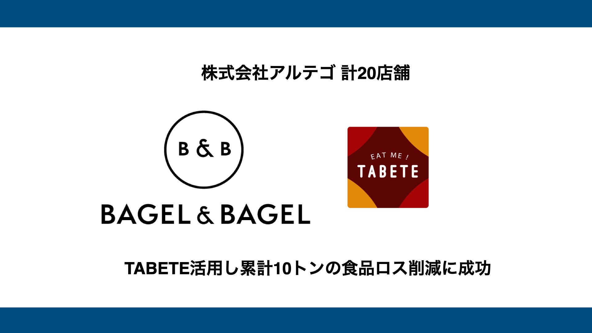 株式会社コークッキング(以下コークッキング)の展開する食品ロス削減のためのフードシェアリングサービス「TABETE(タベテ)」が、株式会社アルテゴが運営する「BAGEL & BAGEL」計20店舗で、約10トンの食品ロス削減に成功しました。