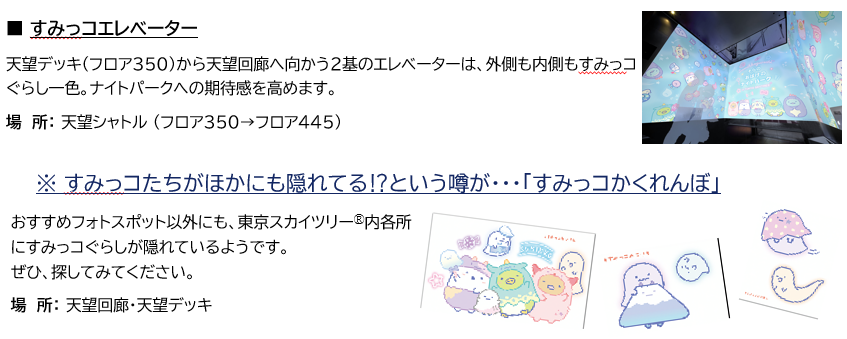 これらのフォトスポット以外にも、東京スカイツリーⓇの各所に“すみっコたちが隠れている!?“という噂も…。