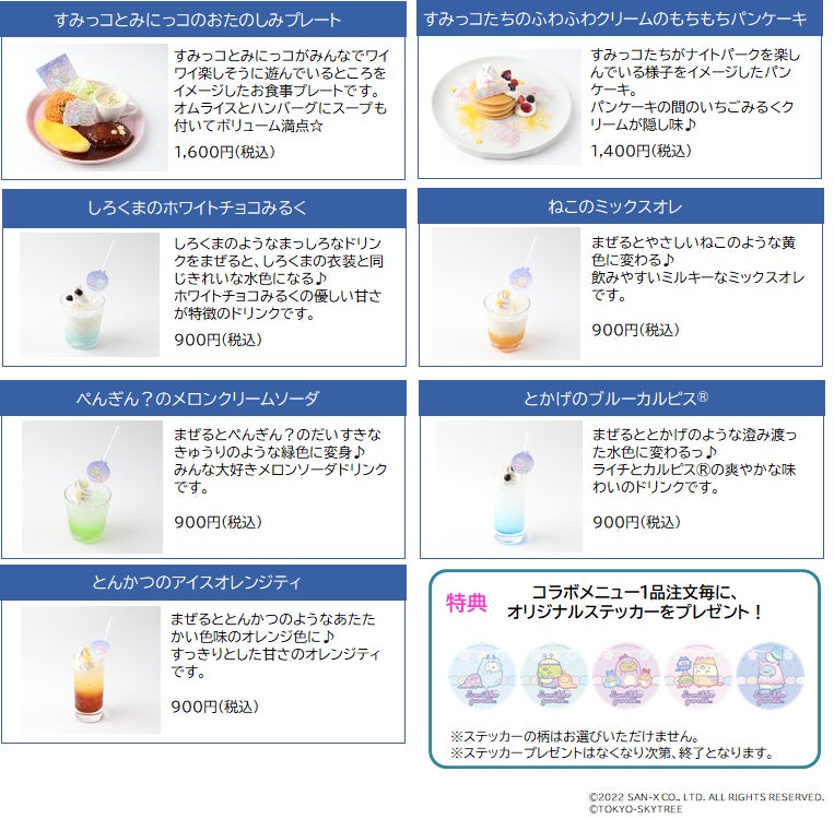 天望デッキからの眺望を眺めながら「すみっコぐらし」の限定コラボメニューを是非ご賞味ください。