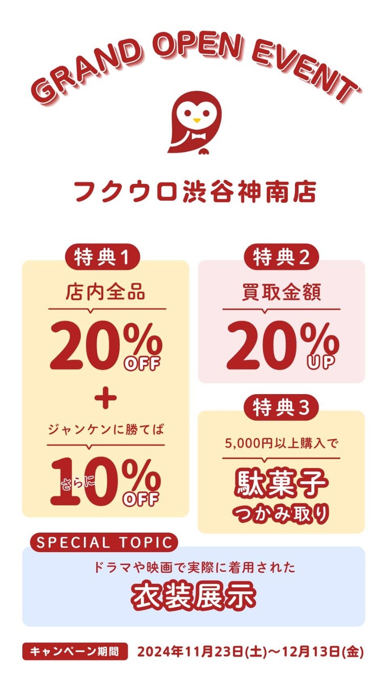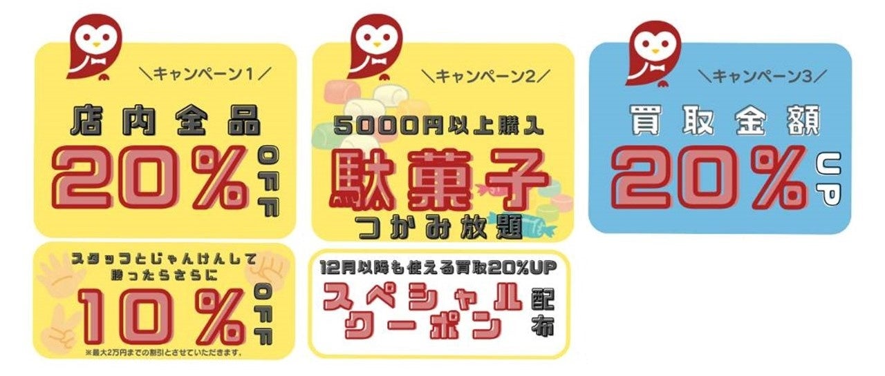 ~12/13(金)まで店内全品20%OFF、買取金額20%UPなどのキャンペーンを実施~