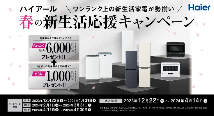 ・キャンペーンサイト:https://www.haier.com/jp/markets/2024_spring/