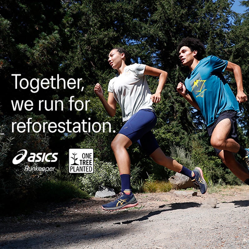 当社が提供するフィットネス・トラッキング・アプリ「ASICS Runkeeper(アシックス ランキーパー)」を使ってランニングまたはウォーキングで5㎞を完走・完歩すると1本、上限25,000本の木が、当社が提携している森林再生や生態系保護を行う国際的な NGO「One Tree Planted(ワン・トゥリー・プランテッド)」を通して植樹されます。