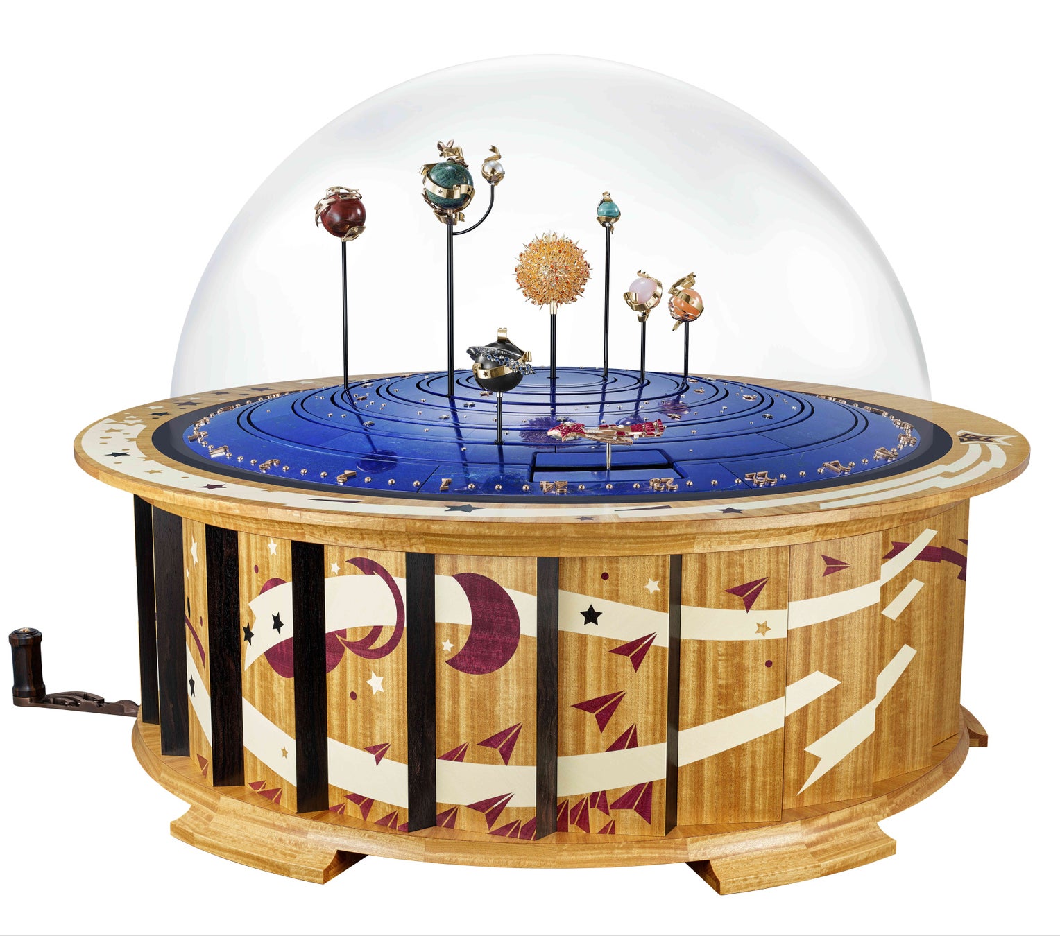 ヴァン クリーフ&アーペルは、ヴァンドーム広場から見上げた星々の煌めきと天球のスペクタクルに魅了されてきました。メゾンは、ポエティック アストロノミーの世界を通じて、こうした天体の美しさを讃えています。2014 年以来、メゾンは、太陽、月、地球を囲む惑星を再現した模型である19 世紀のプラネタリウムを手首のサイズに合わせて縮小する試みに取り組んできました。こうして誕生したのが、コンプリケーション ウォッチと大型のオートマタで構成されるプラネタリウム コレクションです。今年、光り輝く色合いの素材を組み合わせた新しいエクストラオーディナリー オブジェが加わり、コレクションをさらに充実させます。
