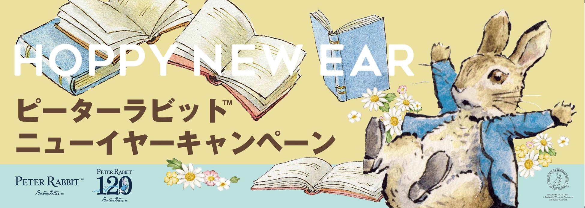 「ピーターラビット™」の魅力を今一度実感いただくべく、耳(EAR)の長いうさぎが飛び跳ねる(HOPPY)ように、アニバーサリーイヤーを書店店頭から盛り上げてまいります。