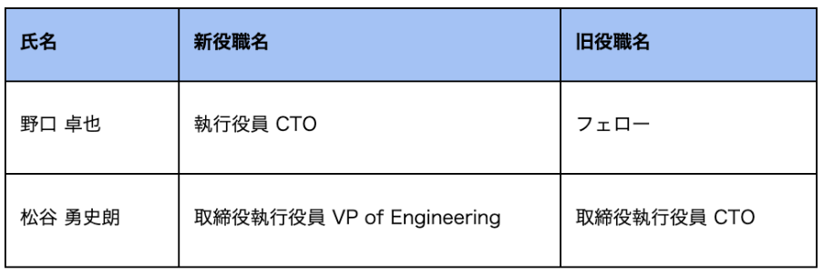 なお、2016年に当社に入社し、2020年執行役員CTO、2022年取締役執行役員CTOとして技術面で当社の経営を牽引してきた現CTOの松谷は、2024年1月より取締役執行役員 VP of Engineeringとして内部開発組織ならびにプロダクトの強化にあたります。