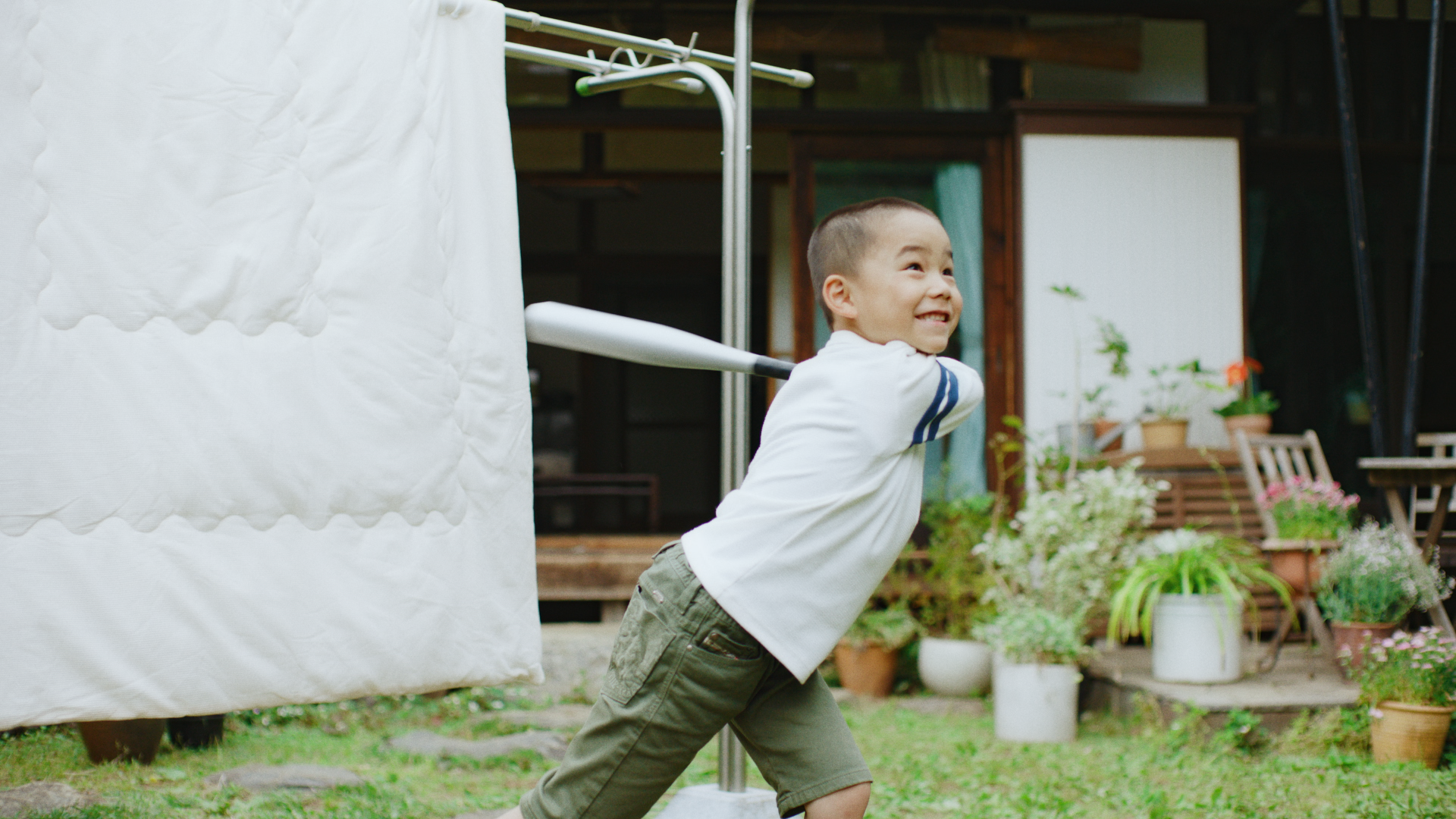 バッティングシーンの撮影も元気に終えた番家玖太くん。リビングで寝てしまう場面では、疲れもあってか実際に寝てしまいそのまま撮影。しばらく寝たままで、そのリアルな演技に撮影現場は和やかな雰囲気に包まれました。