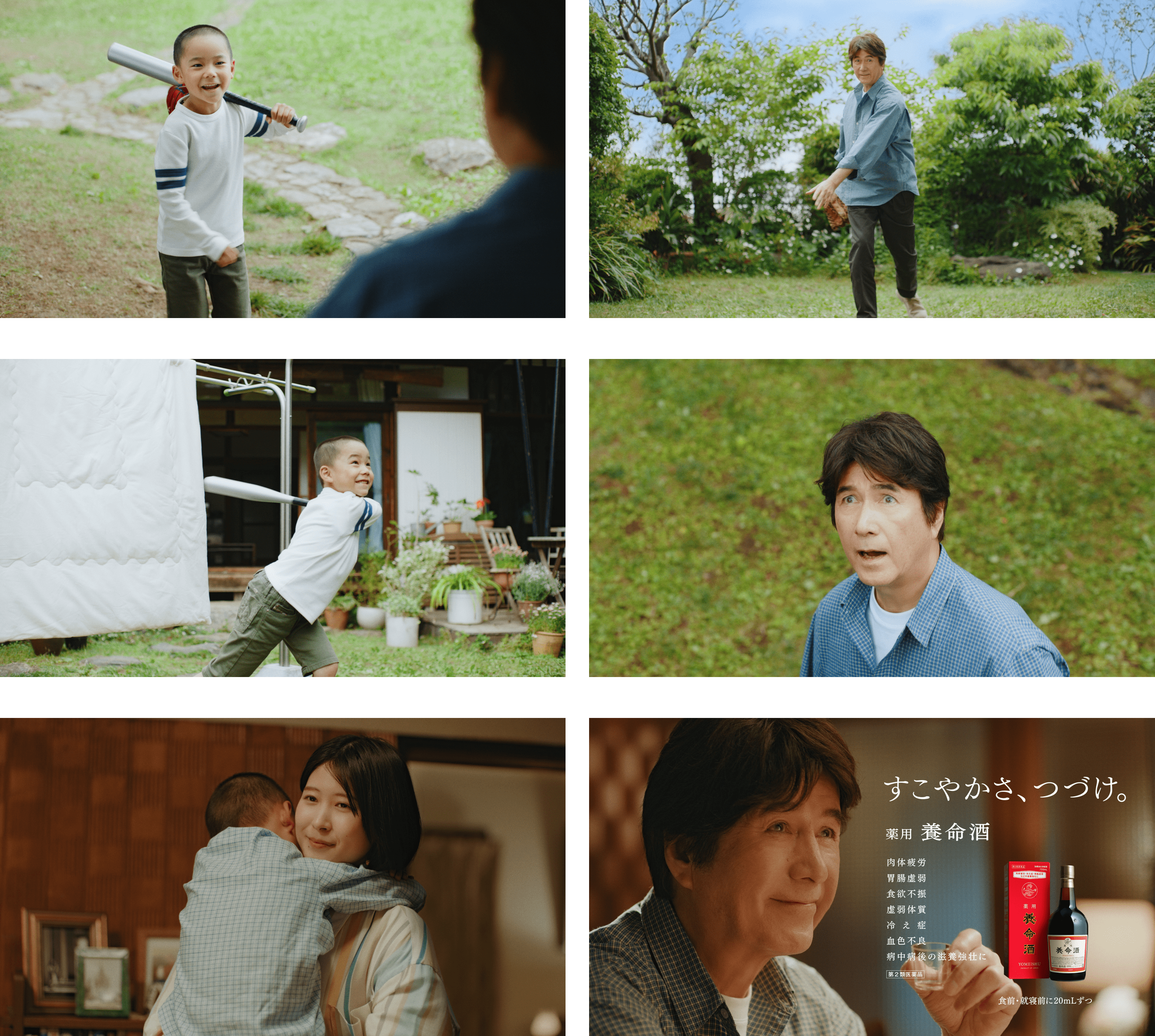 代々受け継がれてきた薬用養命酒。おじいさんやおばあさんが飲んでいたのがきっかけで飲み始めたというお声も多くいただきます。孫の成長を願い、成長した姿を見届けるためにも健康でありたいと願う草刈正雄さんの姿を通して、薬用養命酒はこれからもそんな方々を支える存在であり続けたい、薬用養命酒を飲用することですこやかな生活を送ってほしいという想いをお伝えしています。