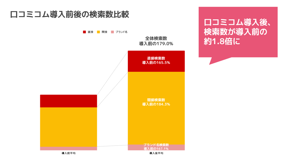 口コミコムが現場に合ったツールの運用・活用方法を提案するなど伴走型のサポートを実施したところ、複数ブランド × 複数サイトの管理が口コミコム一つで解決、業務効率化を実現しました。Googleビジネスプロフィール投稿を増やしたことで、Googleマップのインサイト数値も導入前の1.8倍と右肩上がりに。