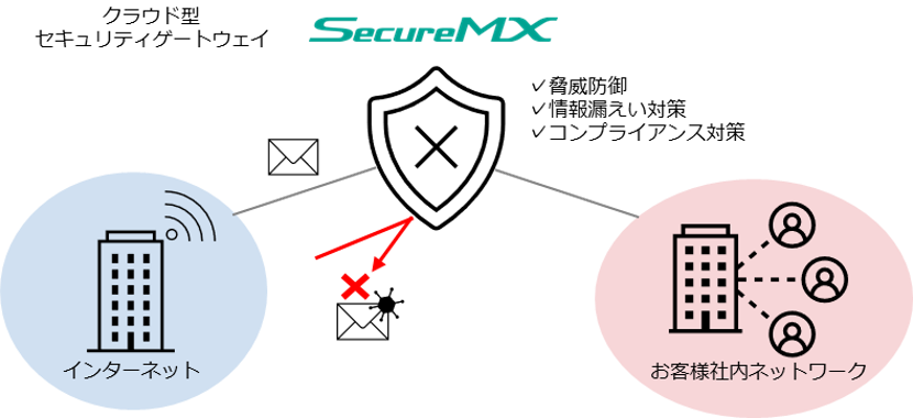 Emotetなどの脅威メール対策、メール誤送信対策など、メールの受信・送信のセキュリティ対策をワンストップに実現できます。