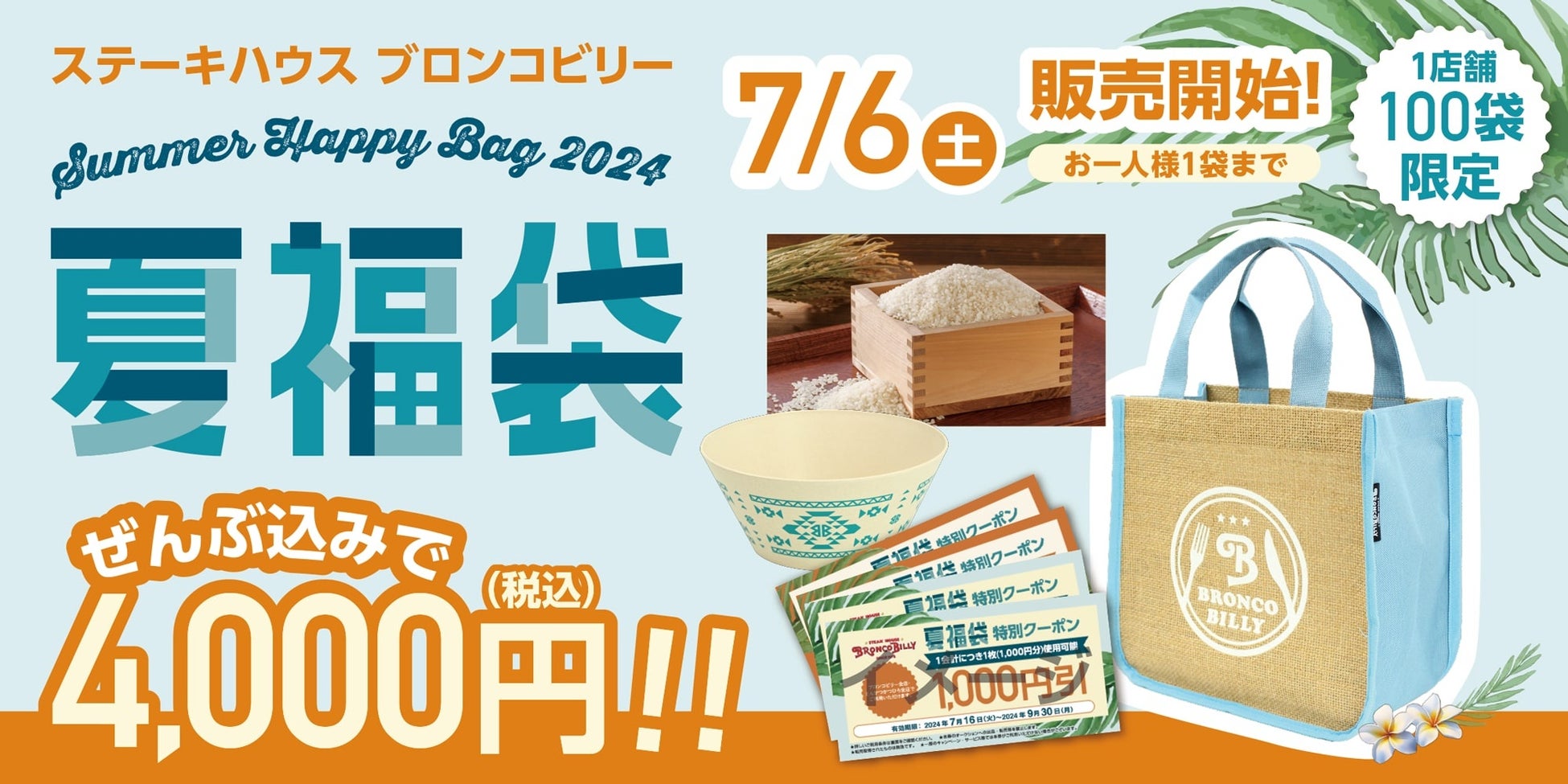 冬だけじゃない!夏の福袋は新たなトレンド?!ステーキハウス ブロンコビリー初の『2024夏福袋』を7月6日(土)より数量限定で販売!