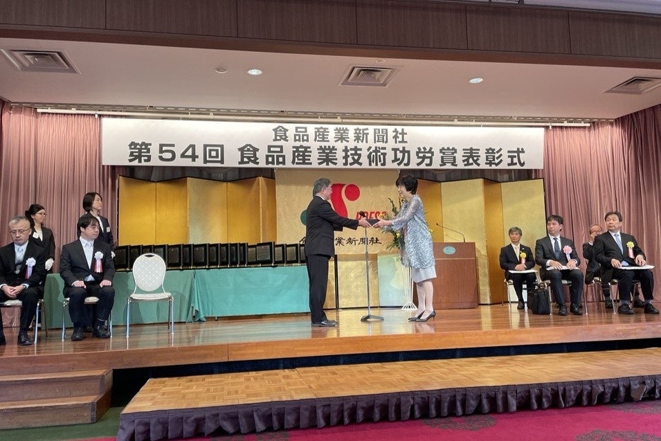 食品産業新聞社が主催する日本の食品産業の発展に著しく貢献した企業、または個人、団体を顕彰する、食品業界の歴史あるアワードです。食品産業新聞社の創立20周年を記念して1971年に制定し、今年で53回目となります。公的立場にある選考委員が、部門別に功労賞を選定し、毎年1回表彰しています。今年は、独自技術を背景にしたヒット商品やサービスなど、6部門38件の商品及びテーマが受賞。部門別内訳は、商品・技術部門11件、資材・機器・システム部門8件、マーケティング部門6件、サステナビリティ部門7件、国際部門4件、地域創生部門2件となりました。選考委員の方々から、「商品・技術部門では、健康配慮や食の多様化に対応するための技術開発に取り組んだ企業の受賞が多かった」というコメントがありました。