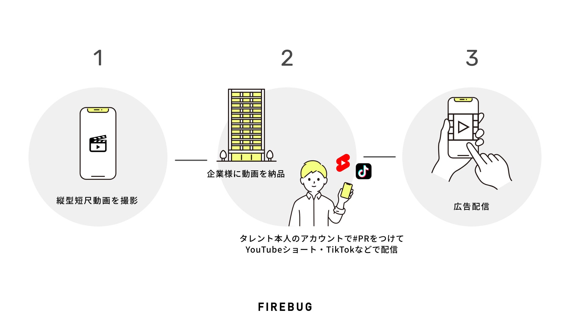 FIREBUGがキャスティングを実施し、PARTYによる企画・クリエイティブサポートのもと縦型短尺動画を制作・納品・配信します。