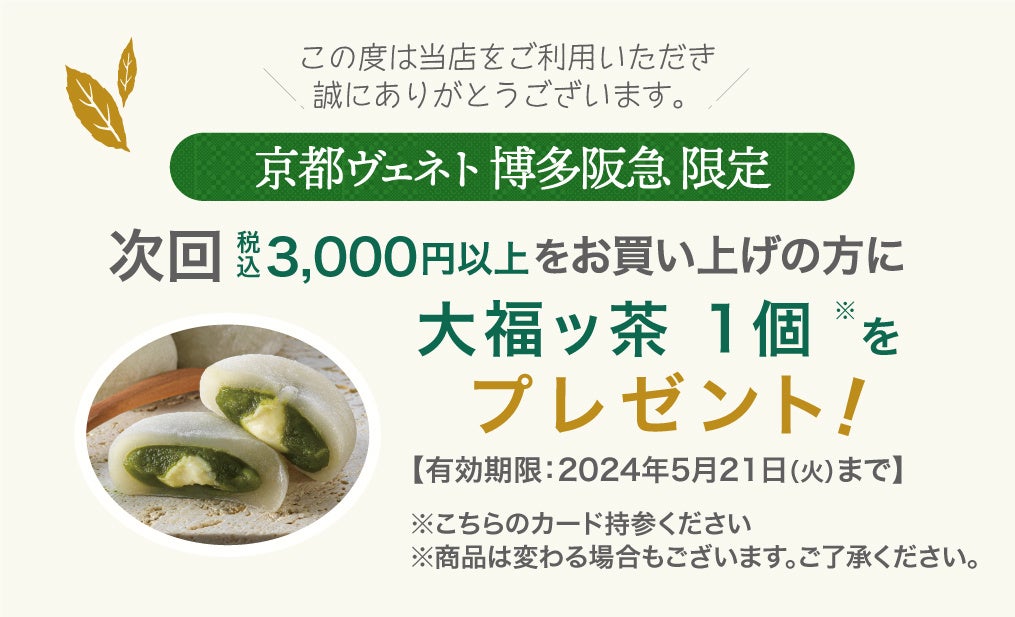 「洋菓子の温故知新」をコンセプトに斬新な抹茶スイーツを展開する「京都ヴェネト(株式会社寿庵)」は2024年5月8日(水)~2024年5月21日(火)の期間、博多阪急にて期間限定販売いたします。