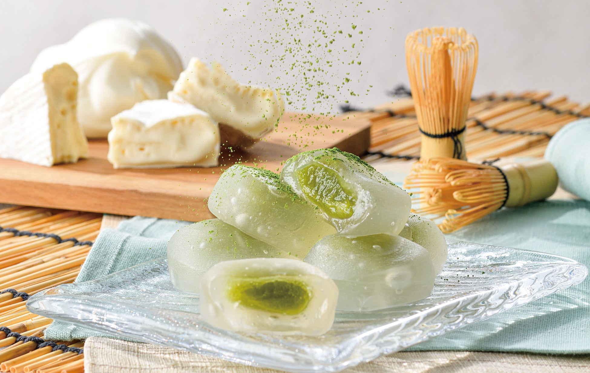 マスカルポーネチーズとカマンベールチーズをブレンドした抹茶餡を甘みのある もちもち食感のわらび餅で包み込みました。チーズと宇治抹茶、和洋それぞれの深みをお楽しみいただけます。