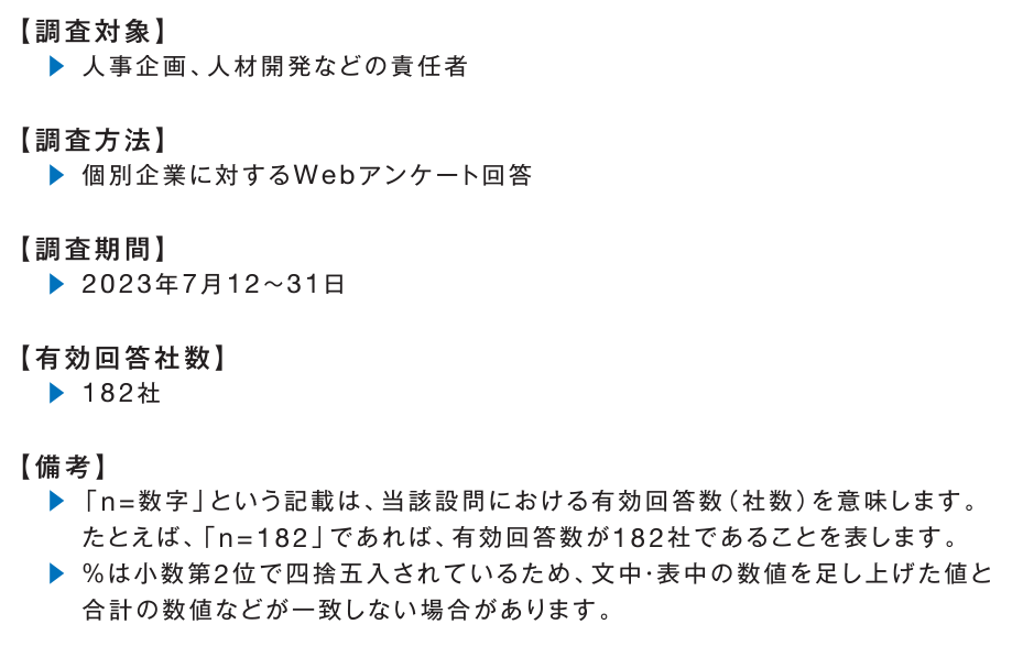 企業における経営・人事課題の解決および、事業・戦略の推進を支援する株式会社リクルートマネジメントソリューションズ(本社:東京都港区、代表取締役社長:山﨑淳以下、当社)は、「企業における『リスキリング』『学び直し』の推進に関する実態調査」を実施し、182社の人事・人材開発の責任者・担当者から回答を得ました。政府が5年で1兆円を投資することを表明するなど、国を挙げての支援が進むなか、企業の「『リスキリング』や『学び直し』の取り組み状況」、「推進課題や推進の為の支援策」などの実態を明らかにするために、本調査を実施しました。