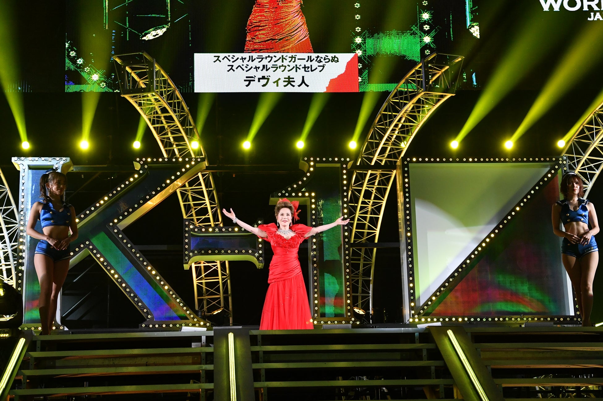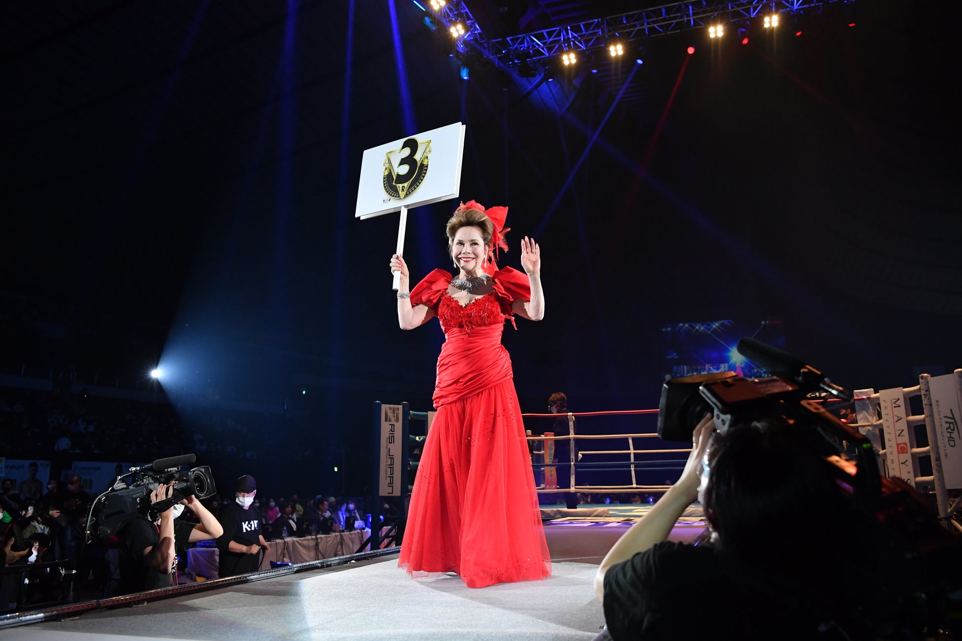 今回特別にデヴィ夫人にご登場いただき、スペシャルラウンドガールならぬスペシャルラウンド“セレブ”として会場に華を添えていただきました。更にビビる大木さんがスペシャルリングアナとして初登場し会場を盛り上げていただきました。