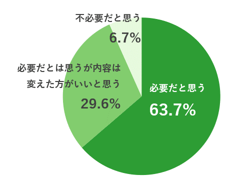 夏休みの宿題は必要か、という質問に対しては「必要だと思う」と答えたのが63.7%、「不必要だと思う」と答えたのは6.7%という結果に。その一方で、宿題は必要だとは思うものの内容に対しては不満を持つ回答が29.6%という結果になりました。
