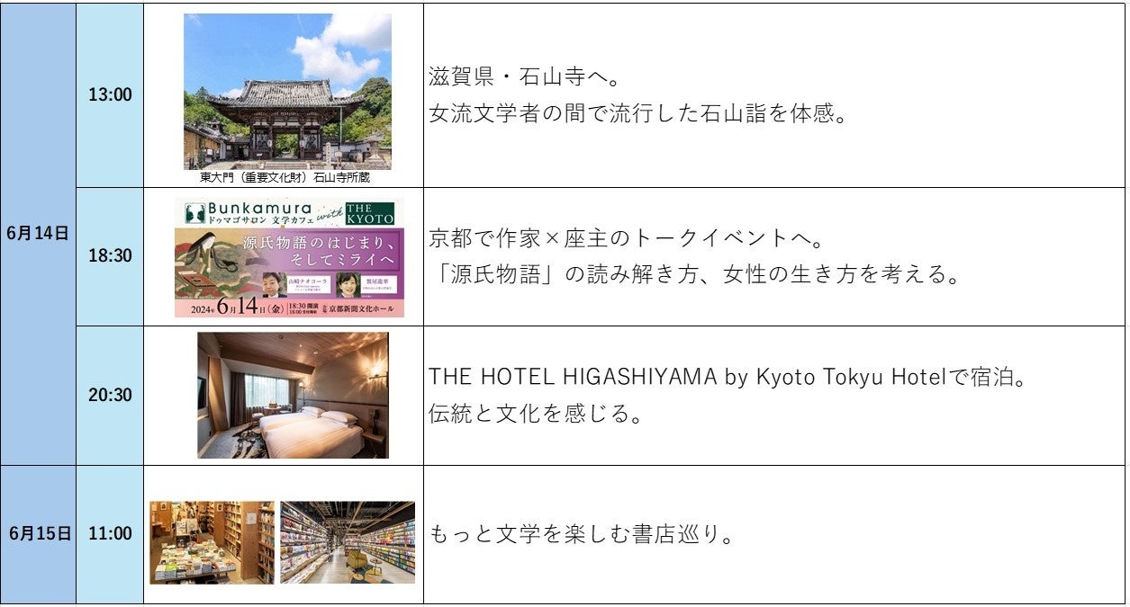旅について考えるこの日にちなみ、「源氏物語」をテーマにした旅のプランをご提案します。トークイベントには山崎ナオコーラ氏、鷲尾龍華氏が登壇。