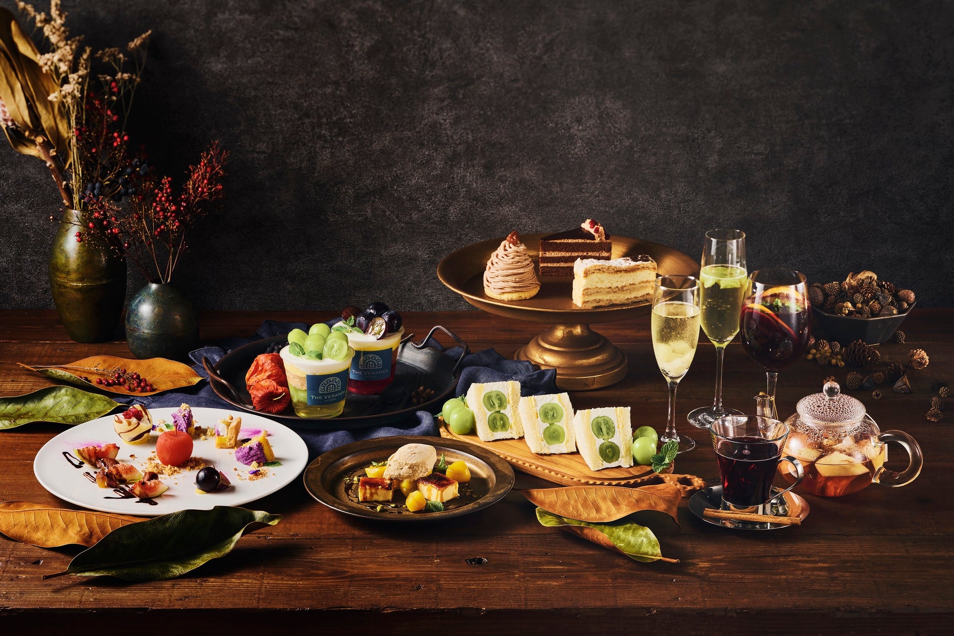 秋をイメージしてデザインされたデザートプレート「季節のクリエーション」や、シャインマスカットや巨峰を8個使用した「スペシャルサヴァラン」、「シャインマスカット入りスパークリング」などオリジナルスイーツやドリンクが期間限定で登場しています。