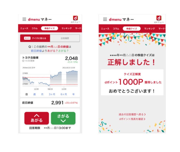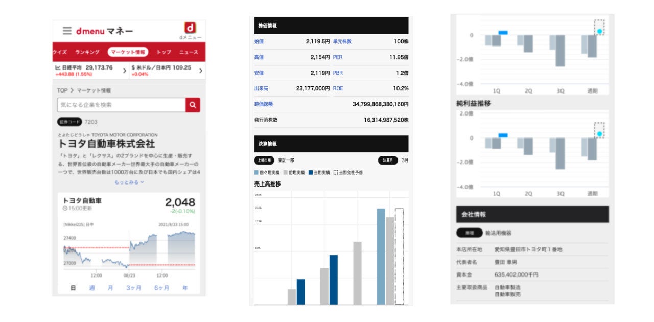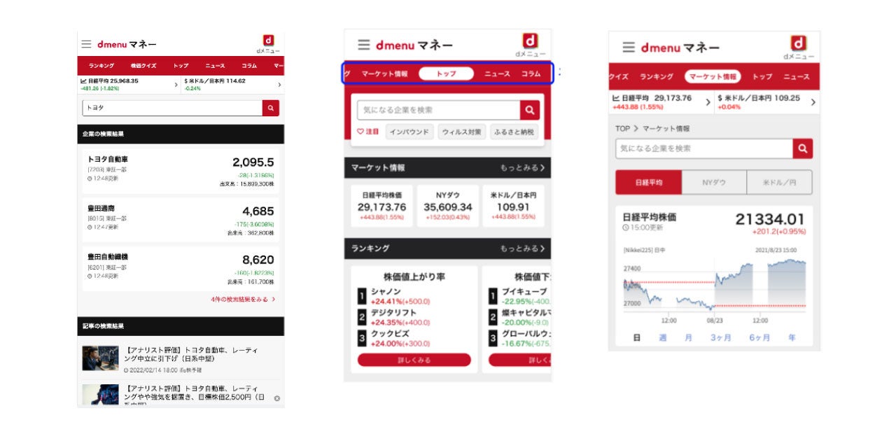 また、3月には『dメニューマネー』のデザインリニューアルに加え、 株価クイズ・企業情報検索など機能も拡充致しました。