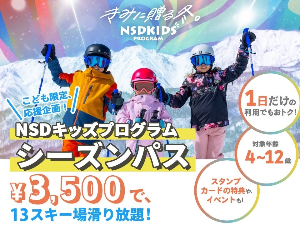2024-2025シーズンも、日本スキー場開発株式会社(本社:長野県北安曇郡白馬村、代表取締役社長:鈴木周平)が企画する『NSDキッズプログラム』の対象スキー場として、オグナほたかスキー場をご利用いただけます!こどもと一緒に 雪山に行こう!というコンセプトの下、少しでも多くの子供たちに雪山デビューをしてもらうべく、日本スキー場開発グループを中心に全国13か所のスキー場が3,500円で滑り放題となるNSDキッズプログラムを実施。お申込みは2025年2月28日まで。
