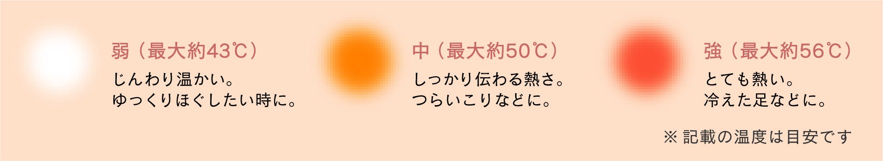 温度 :弱(最大約43℃)・中(最大約50℃)・強(最大約56℃)