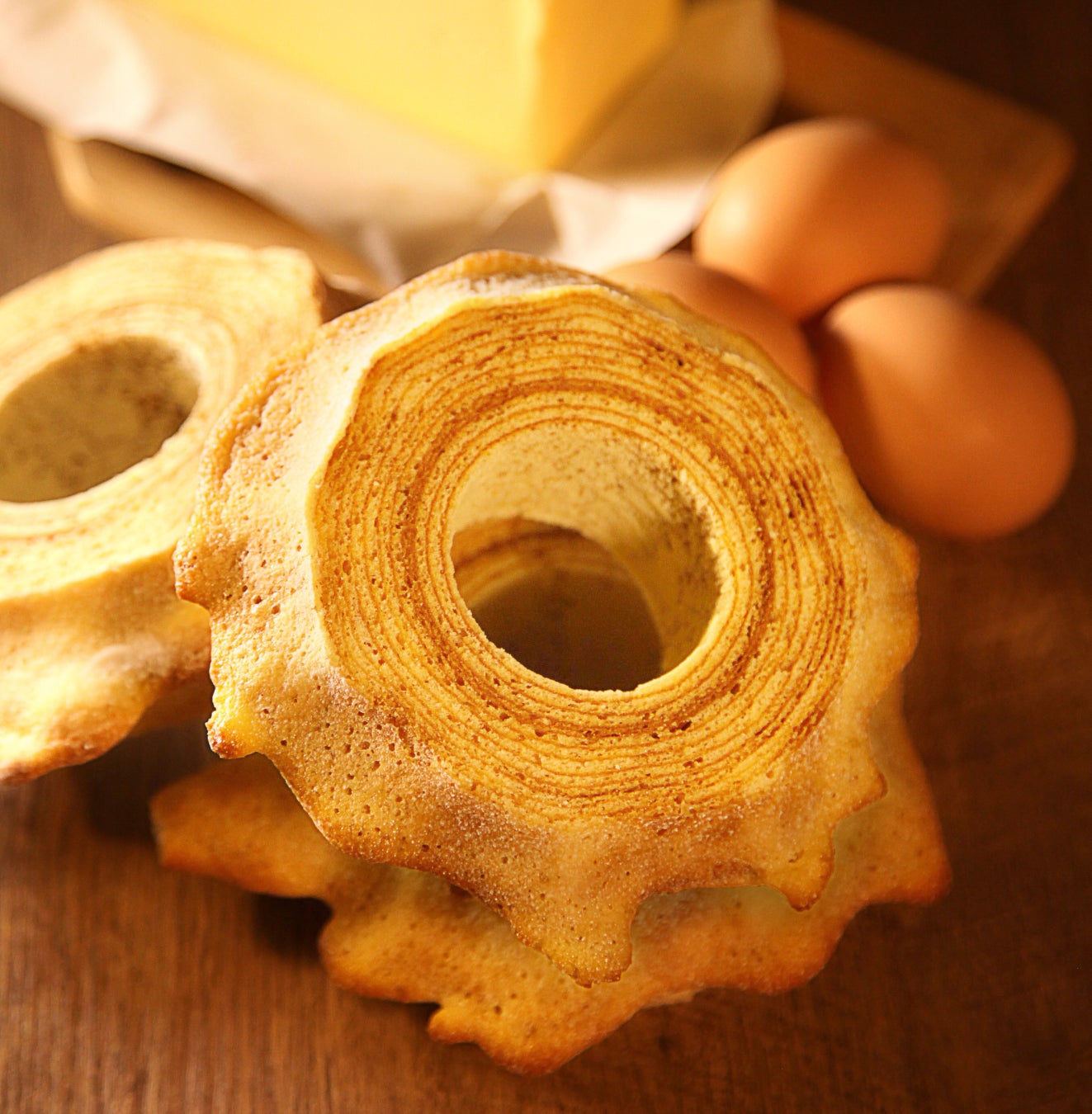 ①トラディショナルバウム党:本場ドイツの製法や材料に倣った正統派バウムクーヘン。
