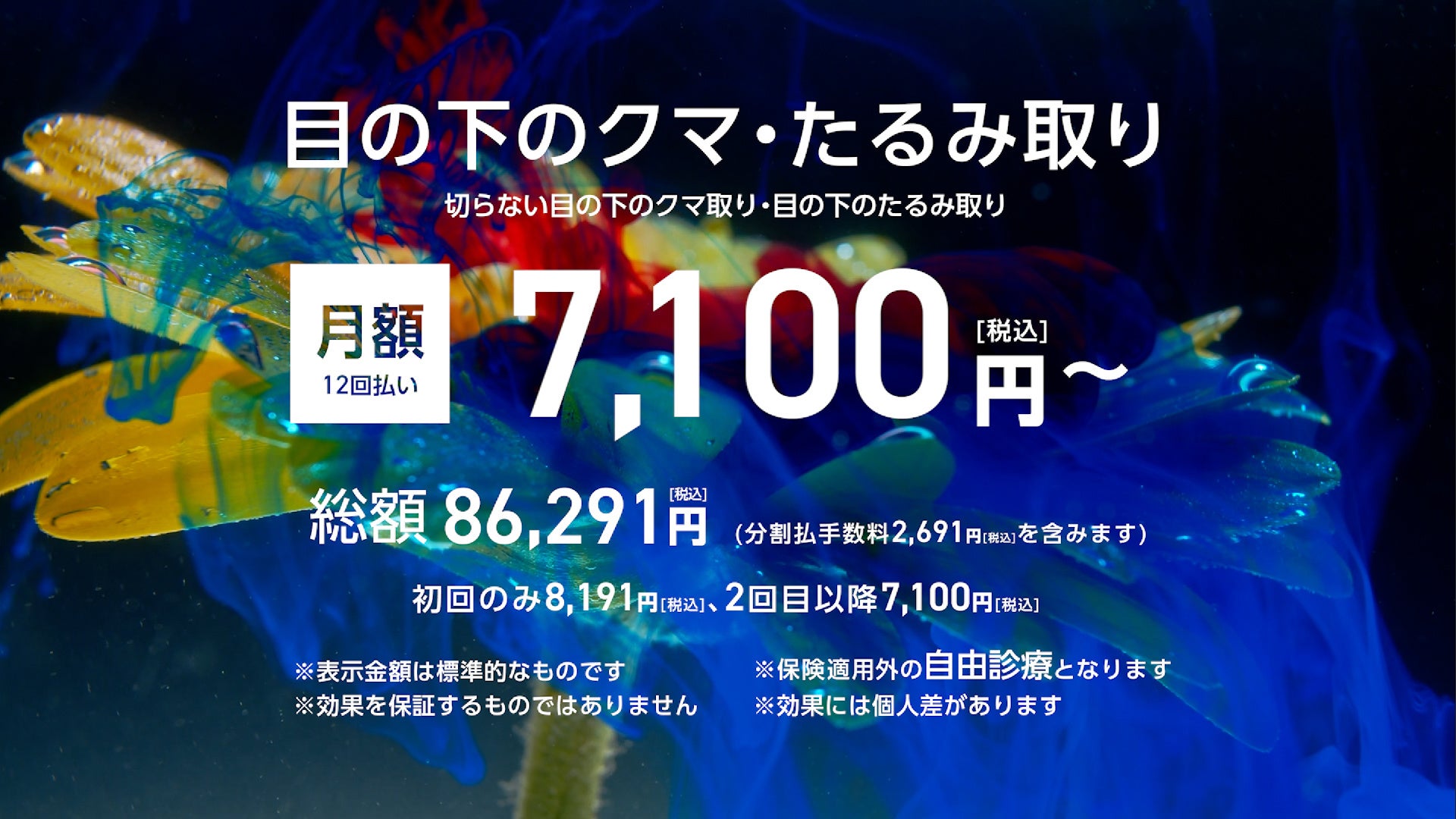 詳細はTCB公式サイト「切らない目の下のクマ取り・目の下のたるみ取り」ページをご覧ください。